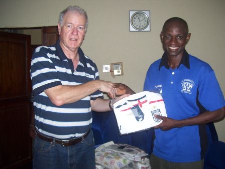 Stuart spent 2 weeks in Africa in January 2011. The visit started with Togo where Verite Sport has a project with the Amis du Monde, women’s football team. Stuart watched the Amis du Monde, wearing their England kit – a gift from the FA – beat Athleta 3-0. He was also able to give the team 17 pairs of boots and 11 balls, sponsored by people in the UK.There were also three separate meetings with people from the Togo FA as well as the President of the Togo Olympic Association.