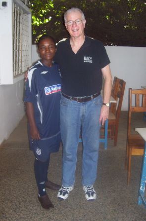 Stuart made his fourth visit to Togo in January 2012. As usual a major purpose was to work with Aimé and the Amis du Monde girls football team, which Verité Sport has supported for three years. Stuart saw the team play and draw 0-0. A surreal aspect of the game was to see two teams line up in England kit – one in blue and one in white – supplied by the FA.What was really encouraging was that the team was very young. As the original team has grown through the teens and is entering their 20s, Aimé has started again with girls who are 14-15, with some of the originals now helping run the team.